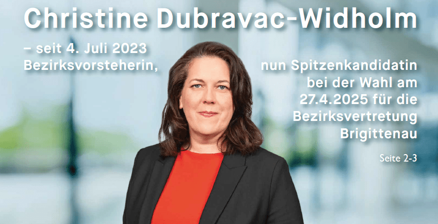 Seit Sommer 2023 ist sie Bezirksvorsteherin der Brigittenau – und sie will es bleiben. Christine Dubravac-Widholm führt das Team der SPÖ Brigittenau bei der Bezirksvertretungswahl am 27. April 2025 an. Wir waren beim Open House der SPÖ Brigittenau, auf dem die Spitzenkandidat:innen für Bezirksvertretung und Gemeinderat erstmals präsentiert wurden.